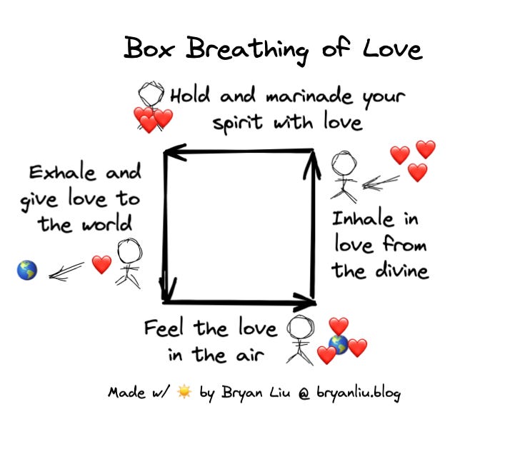 Anchor every inhale to breathing in love, and every exhale to spread love to others. What you give out you get in return, this is the third law of physics.
